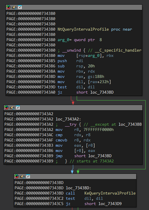 Simplemente cambiamos la forma de obtener kernelBase ya que ahora lo hacemos leyendo registros MSR, luego en KUSER_SHARED_DATA + 0x800 apagamos el bit XD, guardamos ahí un shellcode y finalmente lo ejecutamos con NtQueryIntervalProfile.